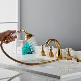 Type: Bathroom Sink Faucets, Style: Modern Contemporary, Features: Widespread, Faucet Type: Bathroom Sink Faucet, Installation Type: Widespread, Cold and Hot Switch: Yes, Valve Type: Brass Valve, Finish: Electroplated, Installation Holes and Handles: Two Handles Two Holes,